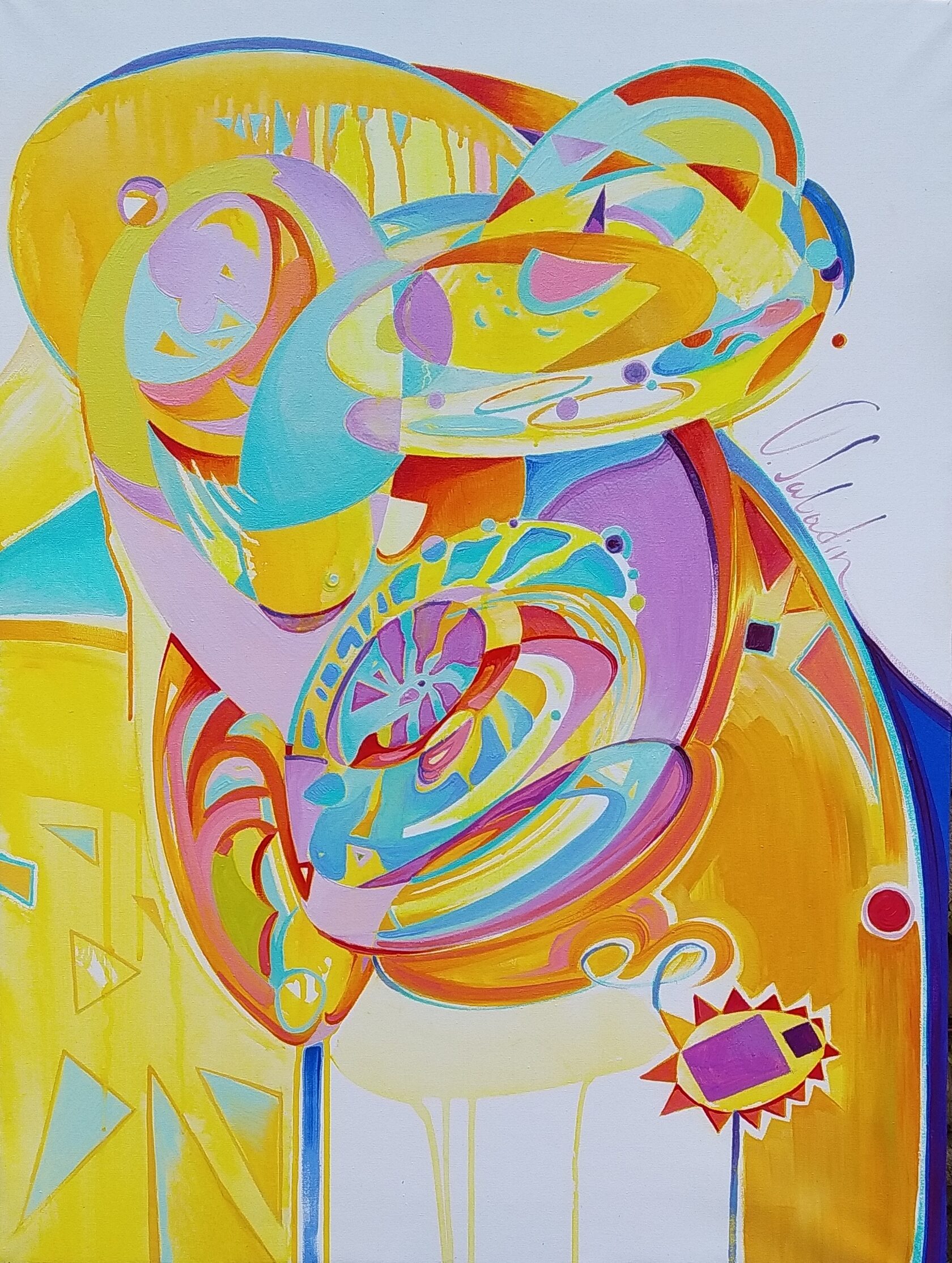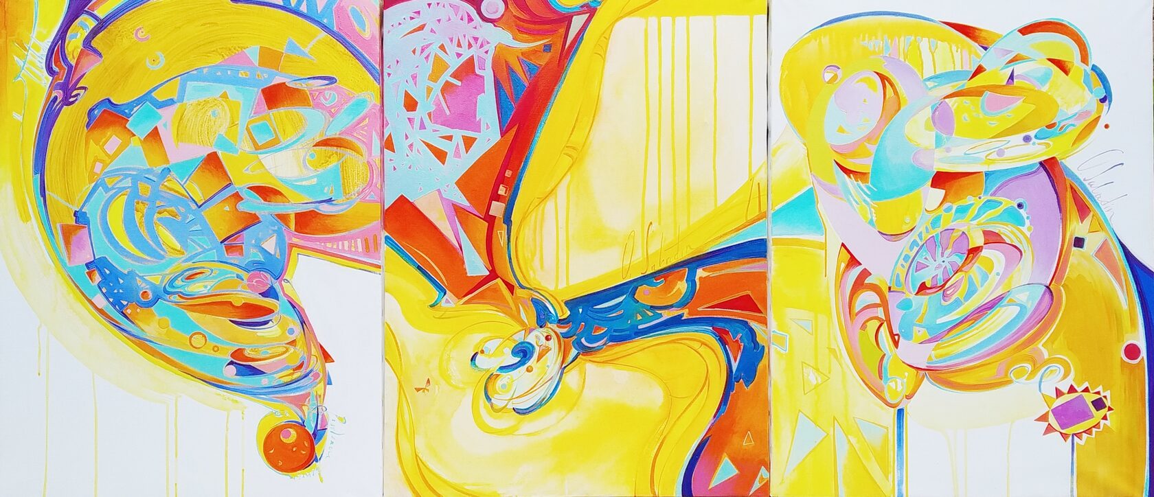 In the first painting "The Birth of Venus" a new life is born from the void. It enters a world full of colors and wonders, absorbs every second of its experience with an increasing speed, like a supernova explosion, or the birth of the entire universe. The reverent attitude towards a woman is conveyed in the work by the timbre and rhythm of the color palette. Over time, harmony settles in. The transformation of energy takes place to create a new form.